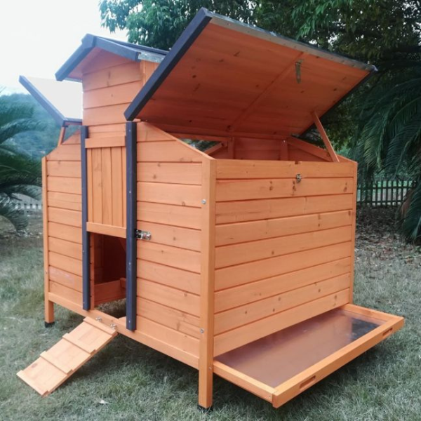 • Features a shingle-style flip-up roof for hassle-free access and protection from weather. This means you can easily check on your hens or clean inside without any struggle.